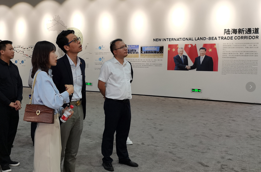 首站多达昂总领事,应陆海新通道运营有限公司邀请,参观了重庆国际物流枢纽园区展厅以及园区,并听取了陆海新通道运营有限公司党委委员、运营总监霍家松和陆海新通道运营有限公司副总经理刘义真,对“一带一路?重庆国际物流枢纽通道”建设情况的介绍。